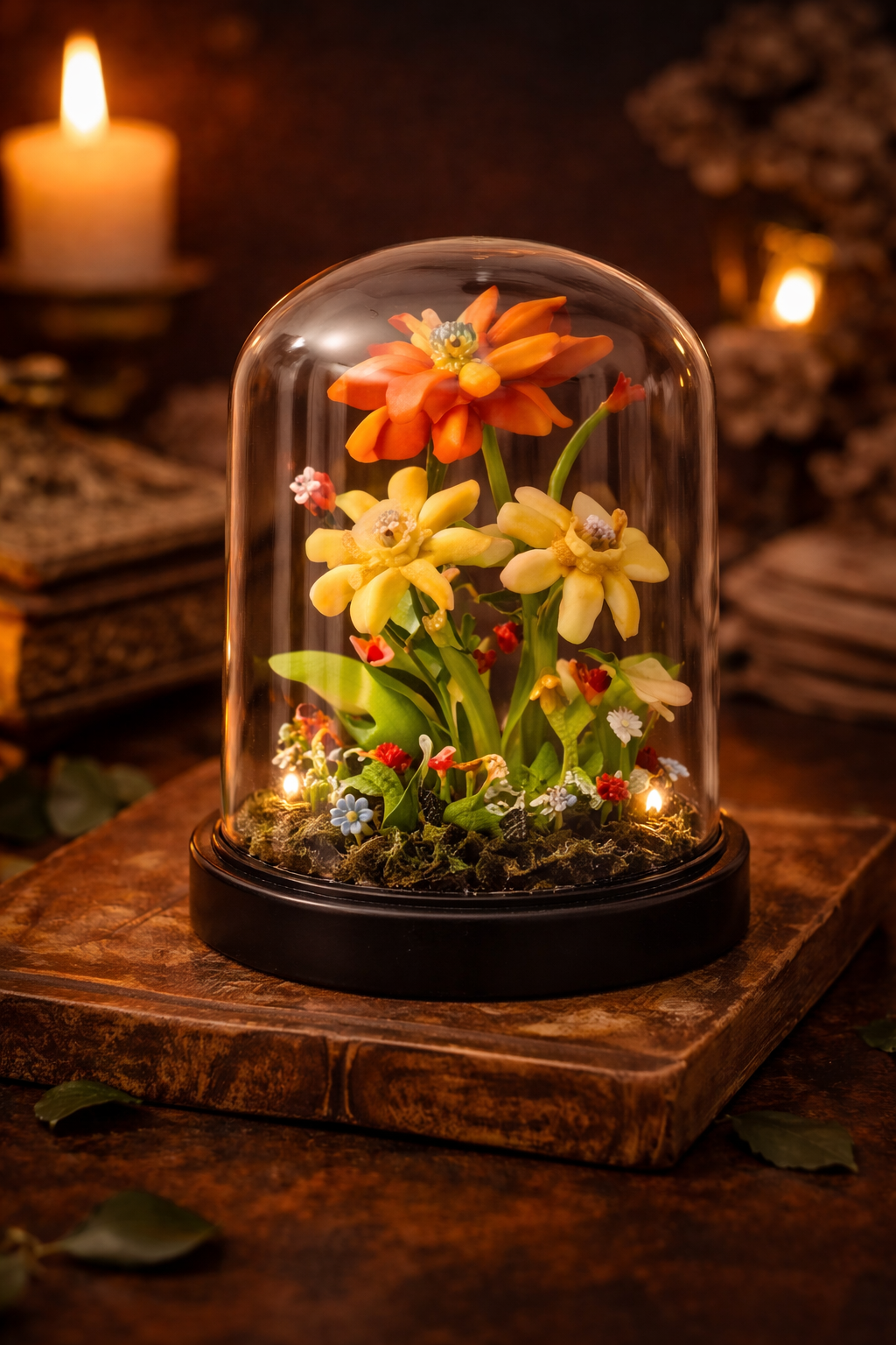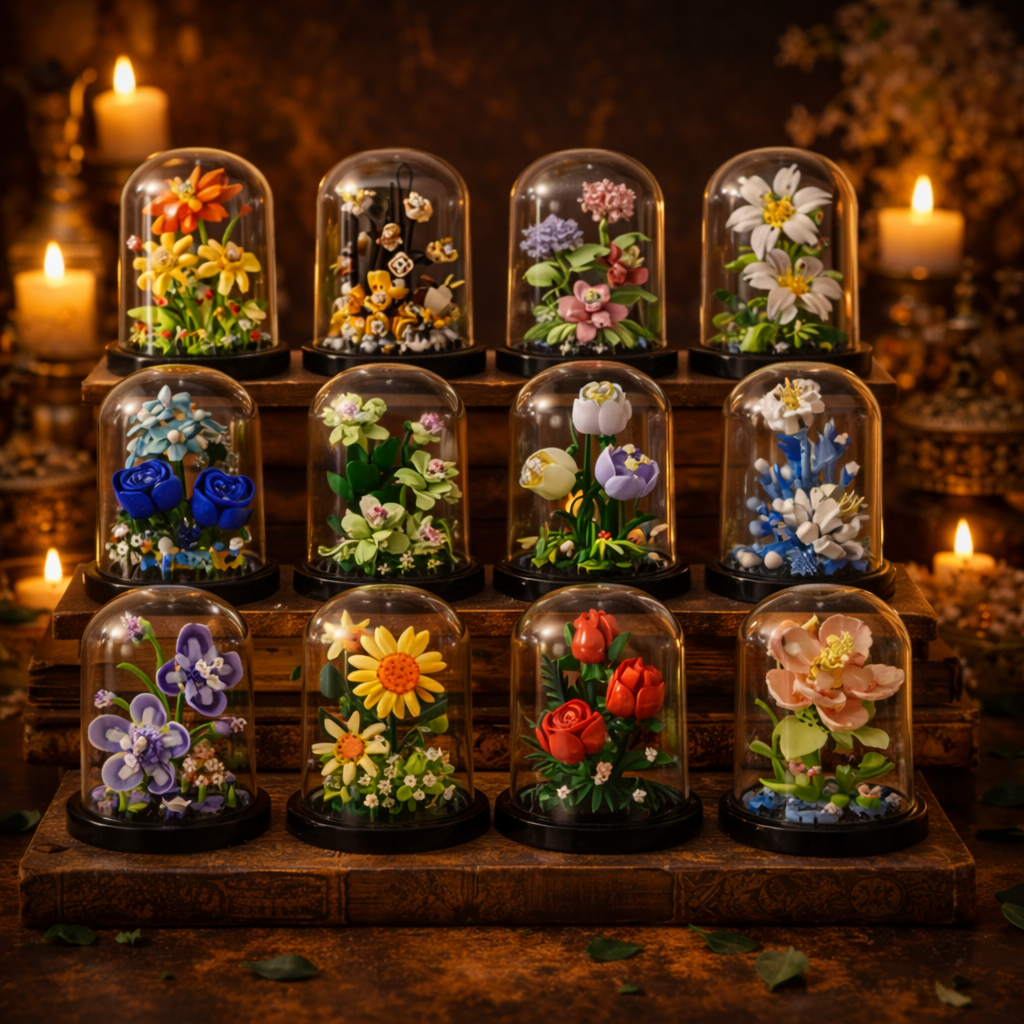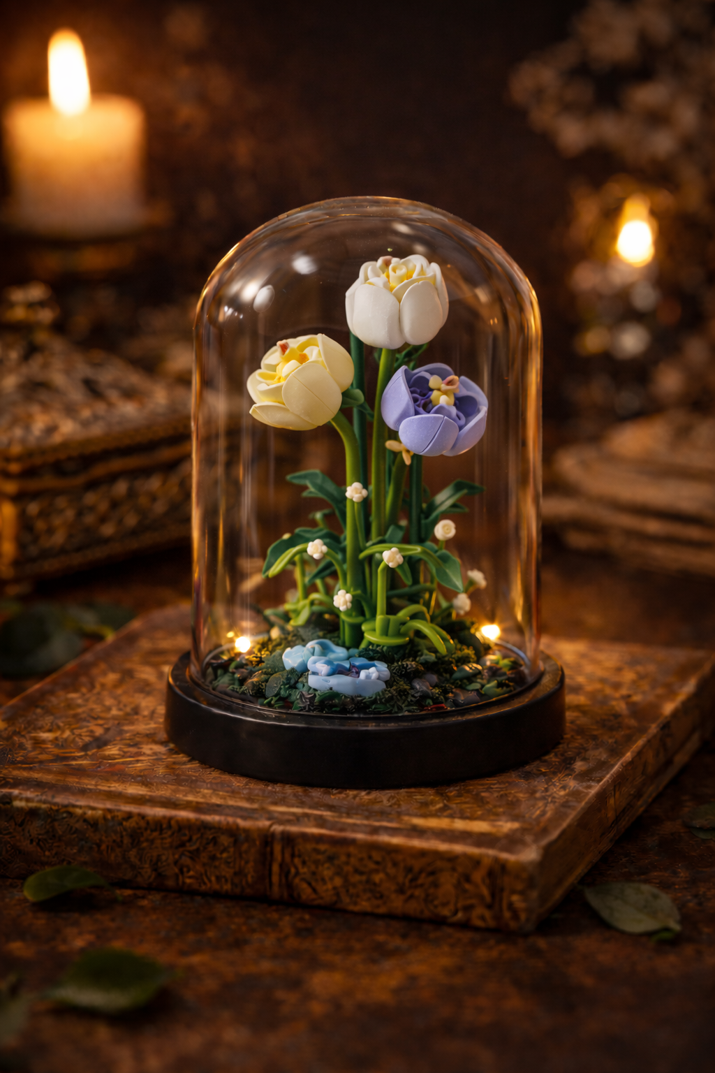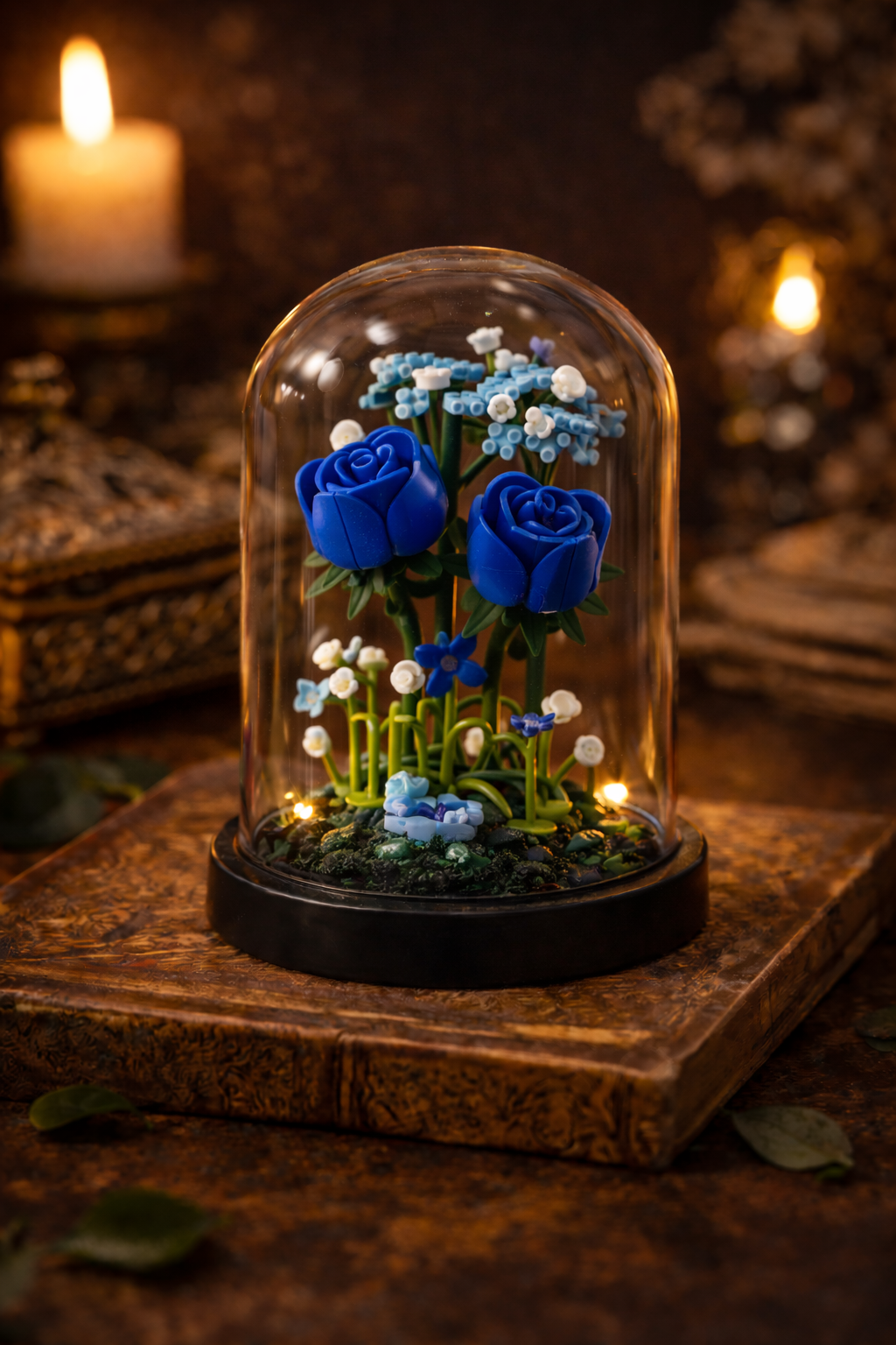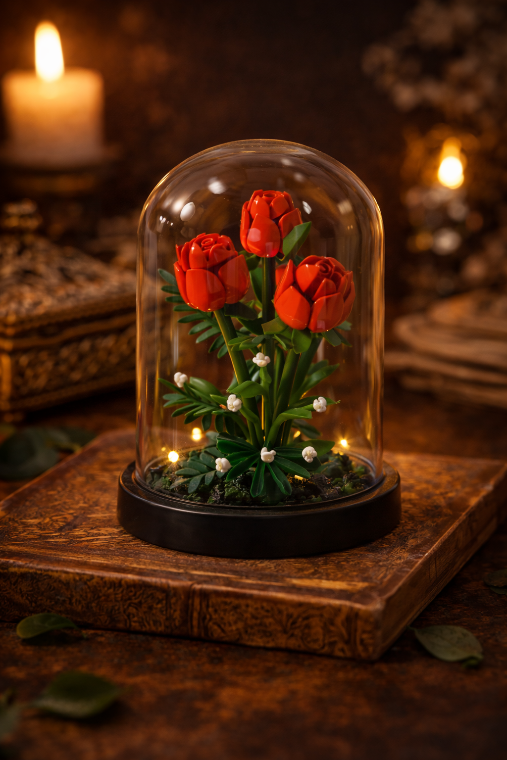 LEGO Róża to dekoracyjny kwiat z klocków LEGO zamknięty pod szklaną kopułą.